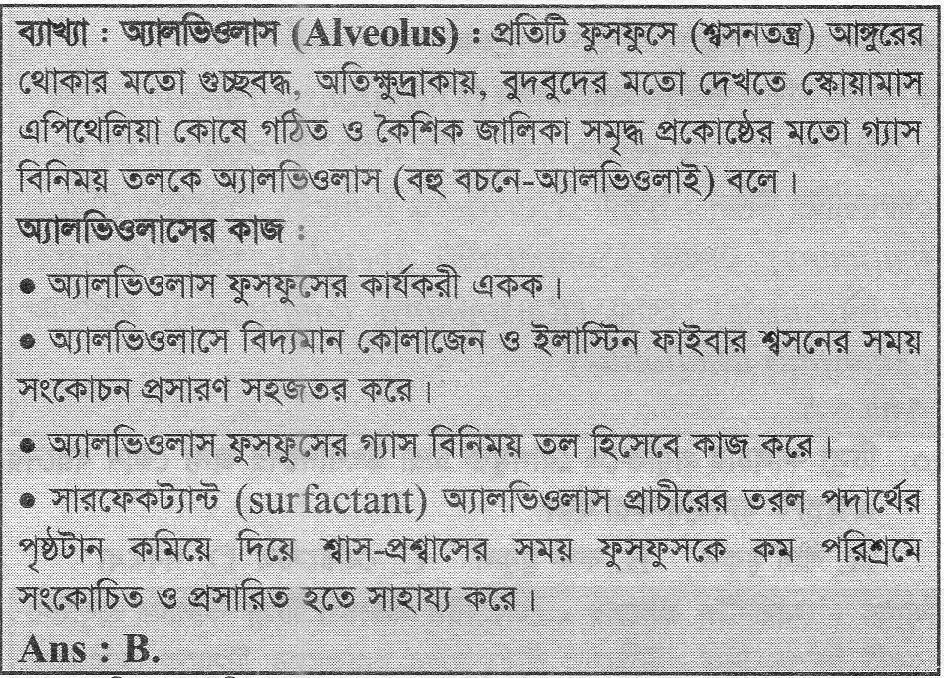 Correct Answer is: শ্বাসতন্ত্রের
