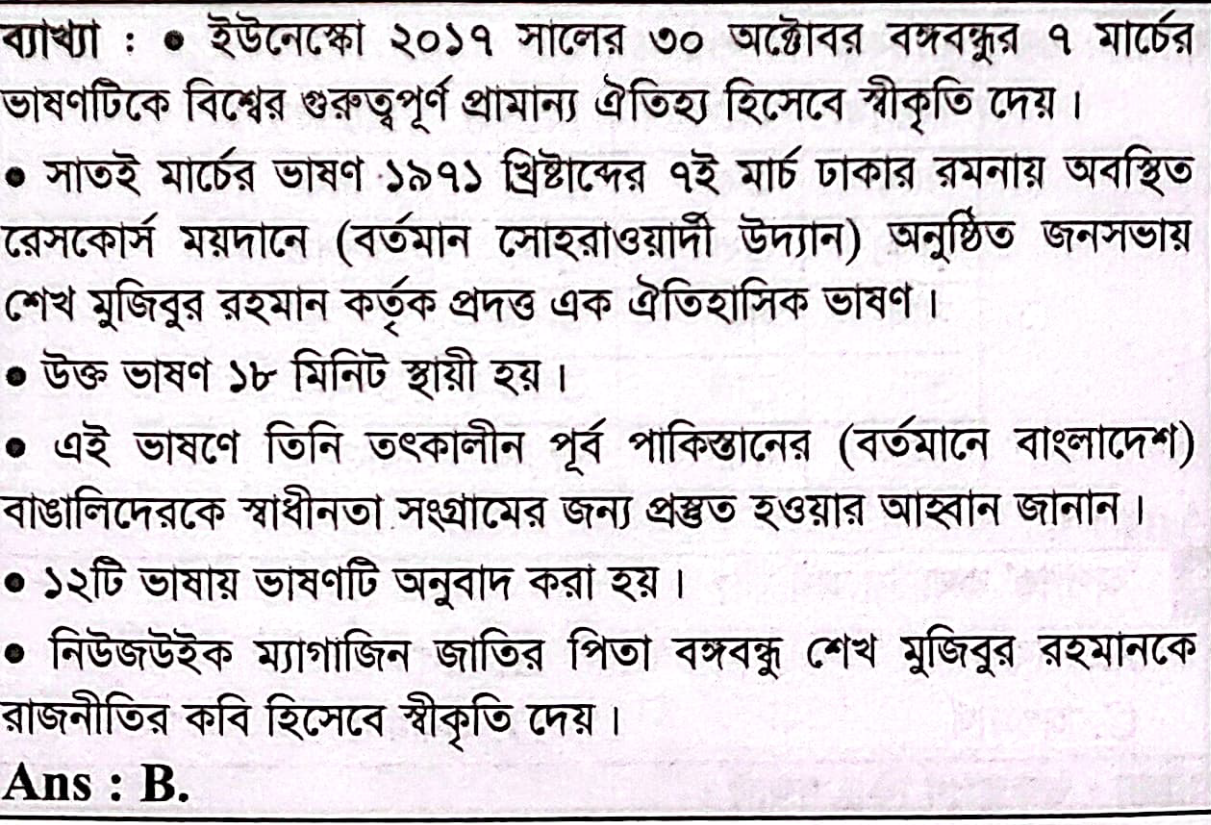 ইউনেস্কো কবে বঙ্গবন্ধুর ৭ই মার্চের ভাষণকে বিশ্বের প্রামাণ্য ঐতিহ্য হিসেবে ঘোষণা করে?