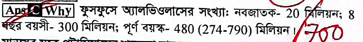 একজন পূর্ণবয়স্ক সুস্থ মানুষের ফুসফুসে অ্যালভিওলাসের সংখ্যা কত?