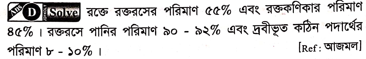 (ক)প্রশ্ন-৩রক্তরসে পানির পরিমাণ শতকরা কত ভাগ?