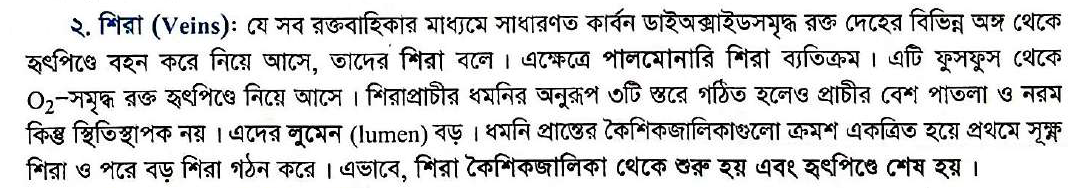 (ক)প্রশ্ন-৪যে সকল রক্তবাহী নালিদেহের বিভিন্ন অংশ থেকে হৎপিণ্ডে রক্ত পরিবহণ করে তাকে কী বলে?