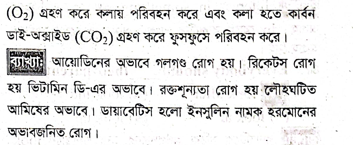 (ক)প্রশ্ন-৫নিম্নের কোনটির উপস্থিতির জন্যে রক্তের রং লাল হয়?