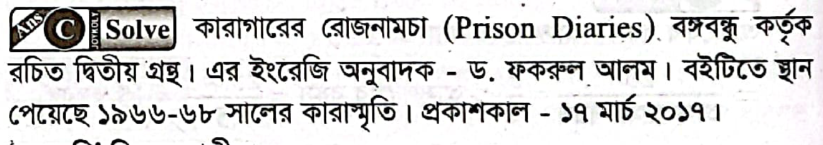 `কারাগারের রোজনামচা` বইটি কার রচিত?