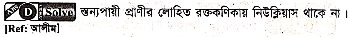 Correct Answer is: স্তন্যপায়ী প্রাণীর লোহিত রক্তকণিকা