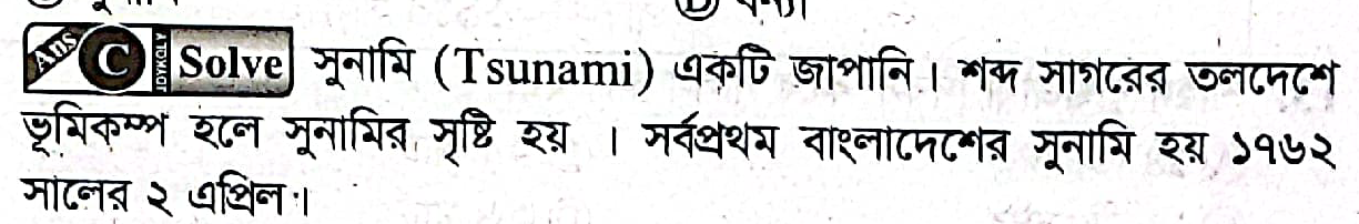 Correct Answer is: সুনামি
