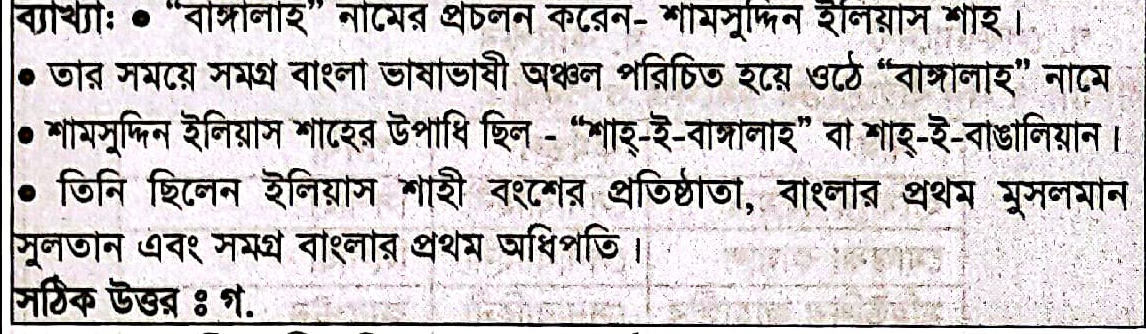 Correct Answer is: শামসুদ্দিন ইলিয়াস শাহ