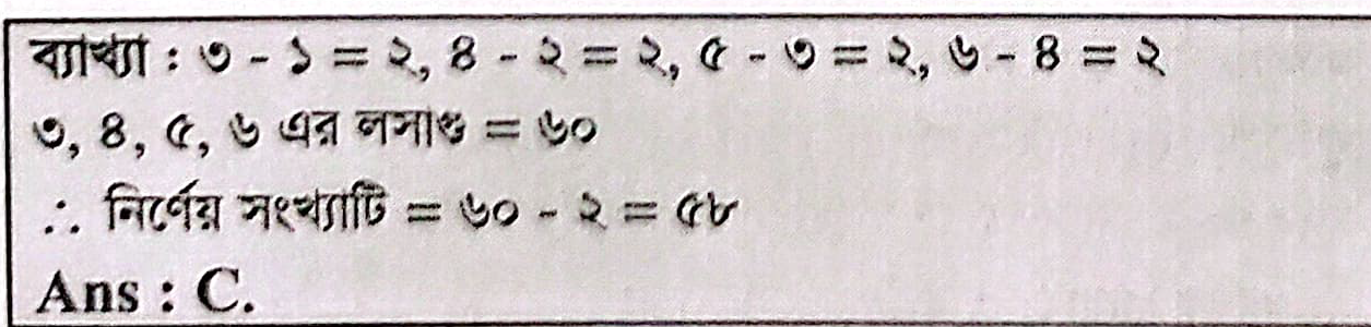 কোন সংখ্যাটিকে ৩,৪,৫ ও৬ দ্বারা ভাগ করলে যথাক্রমে ১,২,৩,ও ৪ অবশিষ্ট থাকে ?