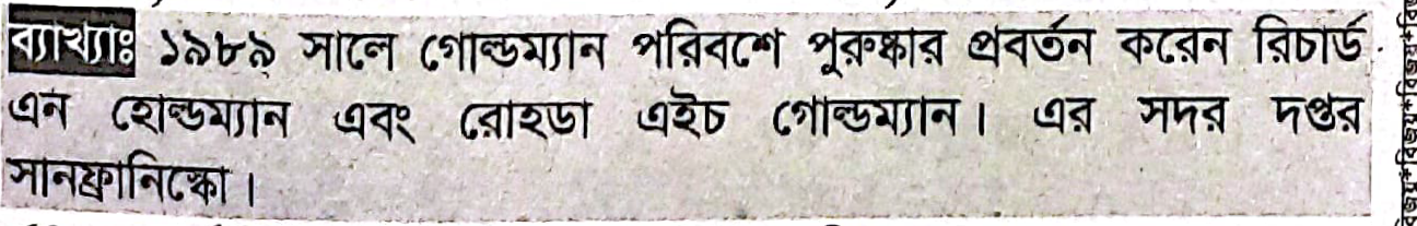 গােল্ডম্যান পরিবেশ পুরস্কার কত সালে প্রবর্তন করা হয়?
