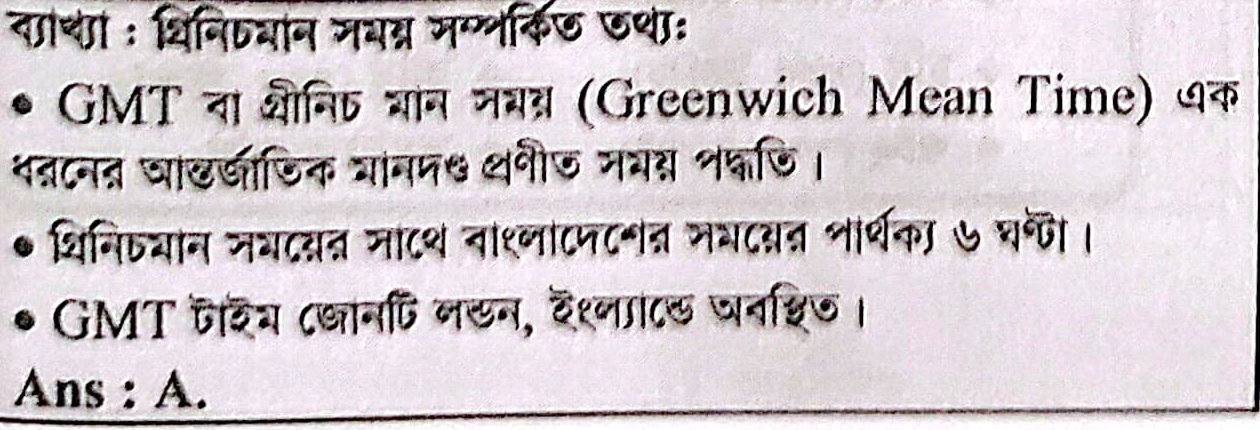 গ্রিনিচমান সময়ের সাথে বাংলাদেশের সময়ের পার্থক্য কত ঘন্টা?
