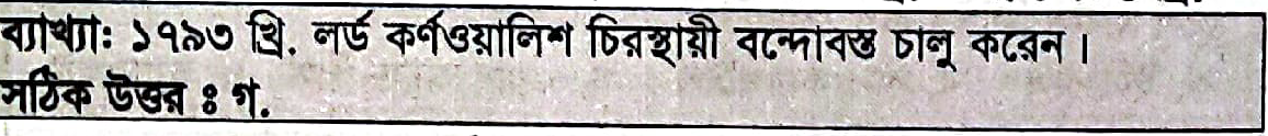 \’চিরস্থায়ী বন্দোবস্ত\’ প্রবর্তন করা হয়-