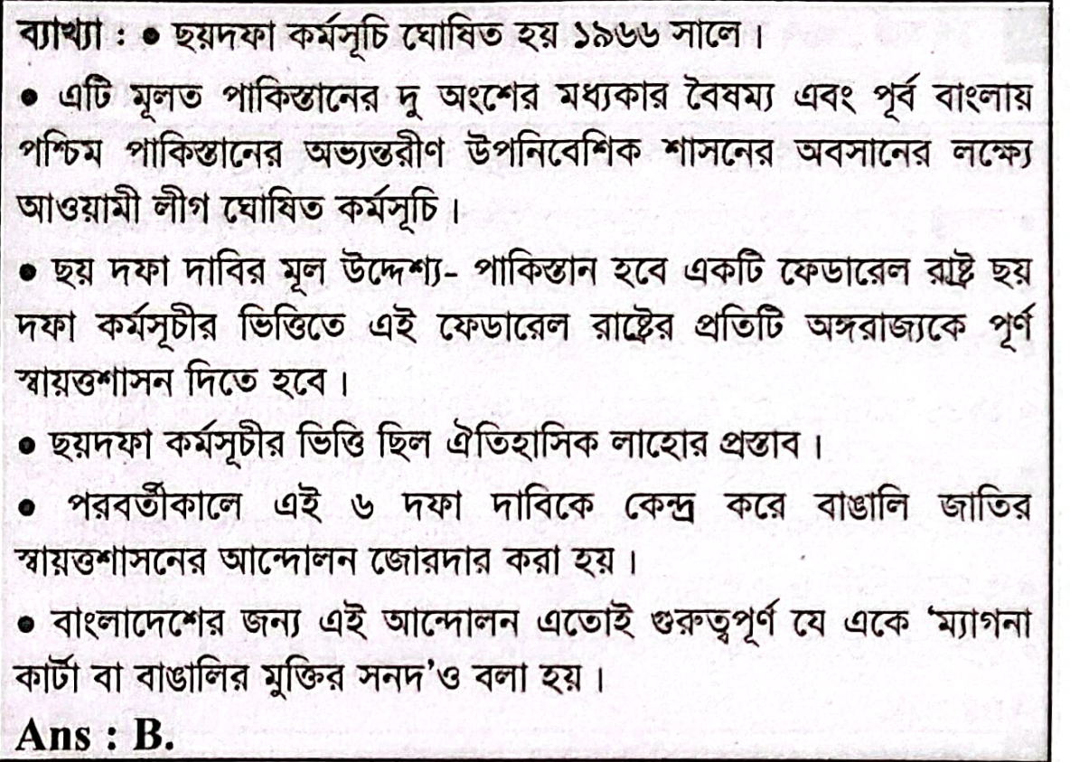 ছয়দফা কর্মসূচি ঘোষিত হয়-