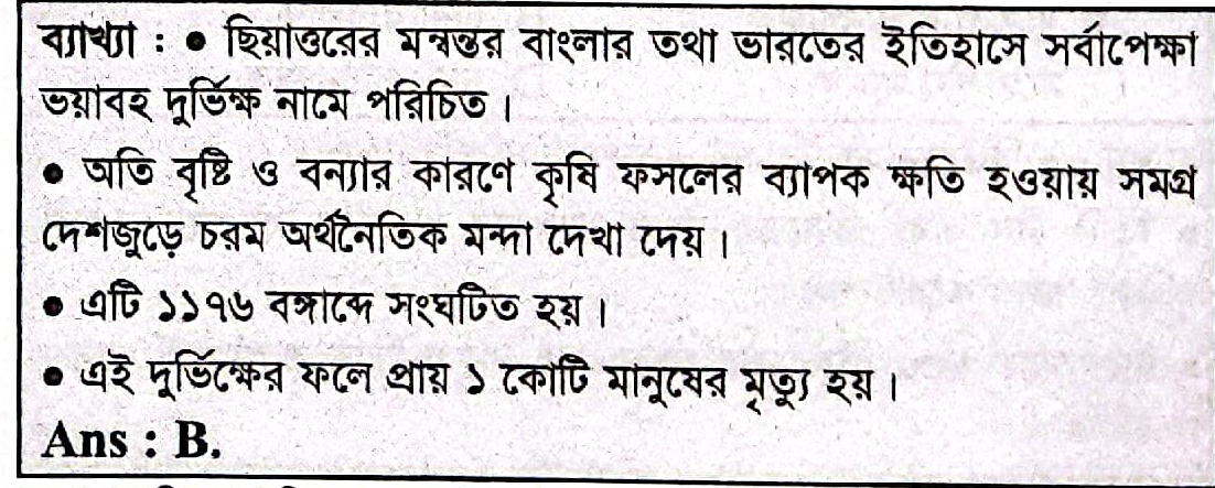 ছিয়াত্তরের মন্বন্তর` কোন বঙ্গাব্দে ঘটে?