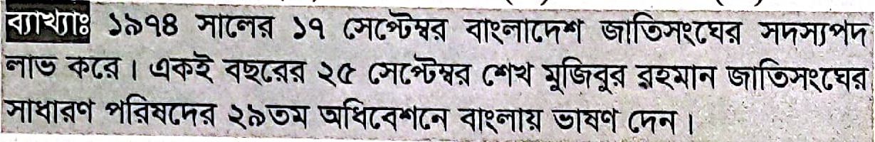 জাতিসংঘের কত তম সাধারণ অধিবেশনে বঙ্গবন্ধু বাংলায় ভাষণ দিয়েছিলেন?