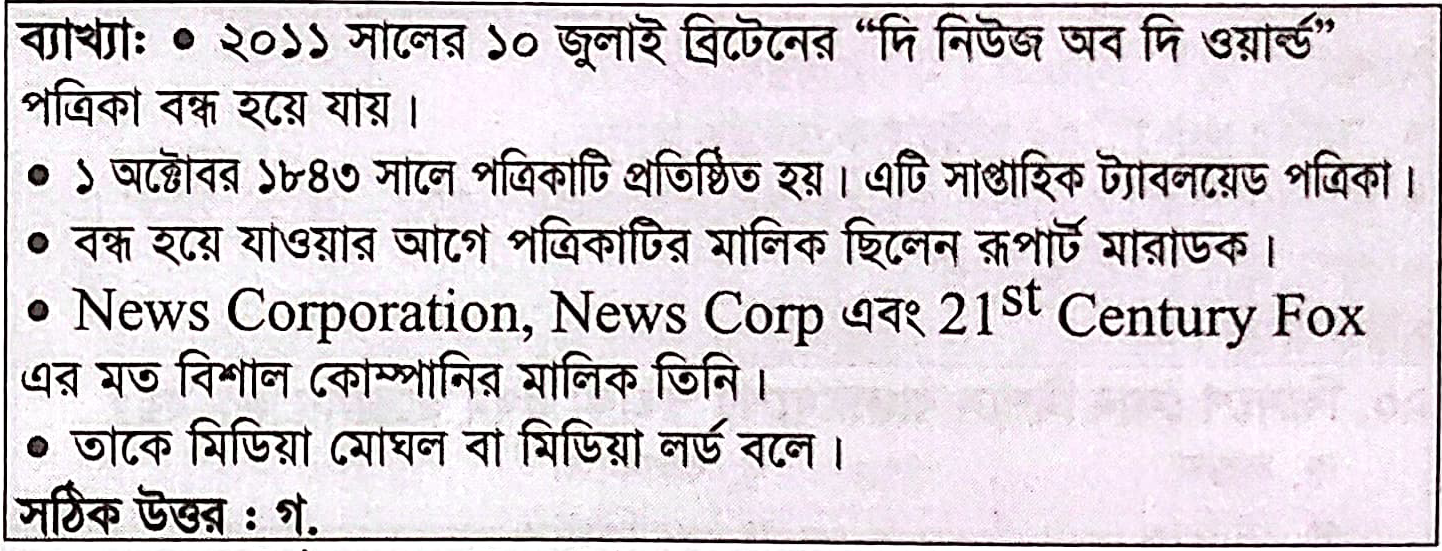 টেলিফোনে আড়িপাতা স্ক্যান্ডাল এর কারণে ব্রিটেনের কোন পত্রিকা ২০১১ সালে বন্ধ হয়ে গেছে?