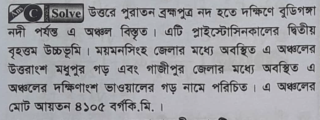 ঢাকা-টাঙ্গাইল ও গাজীপুর জেলার উঁচু ভূমিকে কী বলে?