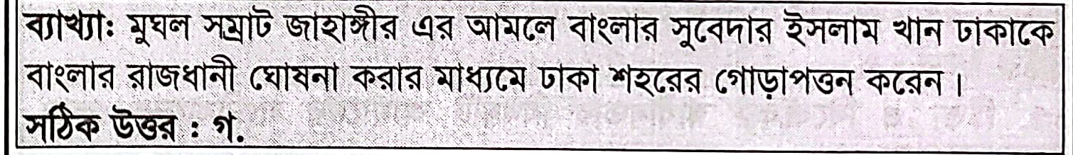 ঢাকা শহরের গোড়াপত্তন হয় –