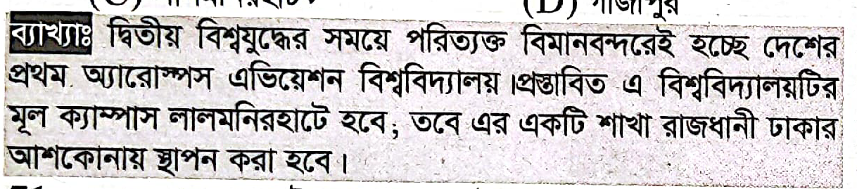 দেশের প্রথম অ্যারোস্পেস এভিয়েশন বিশ্ববিদ্যালয় স্থাপিত হচ্ছে কোথায়?
