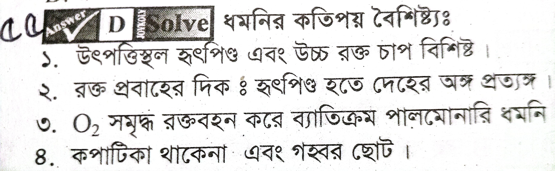 ধমনির ক্ষেত্রে নীচের কোনটি প্রযোজ্য?