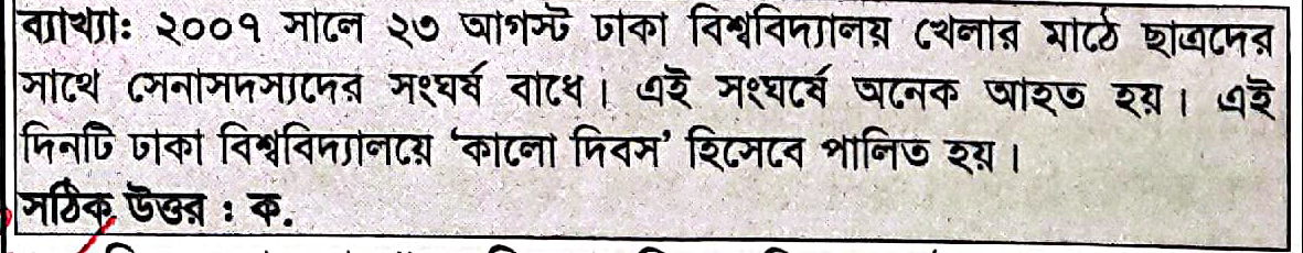 নিচের কোন দিবসটি ঢাকা বিশ্ববিদ্যালয়ে \’কালো দিবস\’ হিসেবে পালিত হয়?