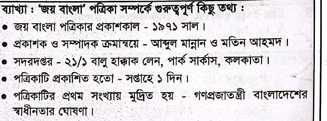 নিচের যে পত্রিকাটি ১৯৭১ সালে বাংলাদেশ মুক্তাঞ্চল থেকে প্রকাশিত হয়-