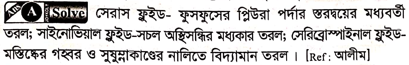 নিম্মের কোন তরল পদার্থটি ফুসফুসকে ঘর্ষণজনিত আঘাত থেকে রক্ষা করে?