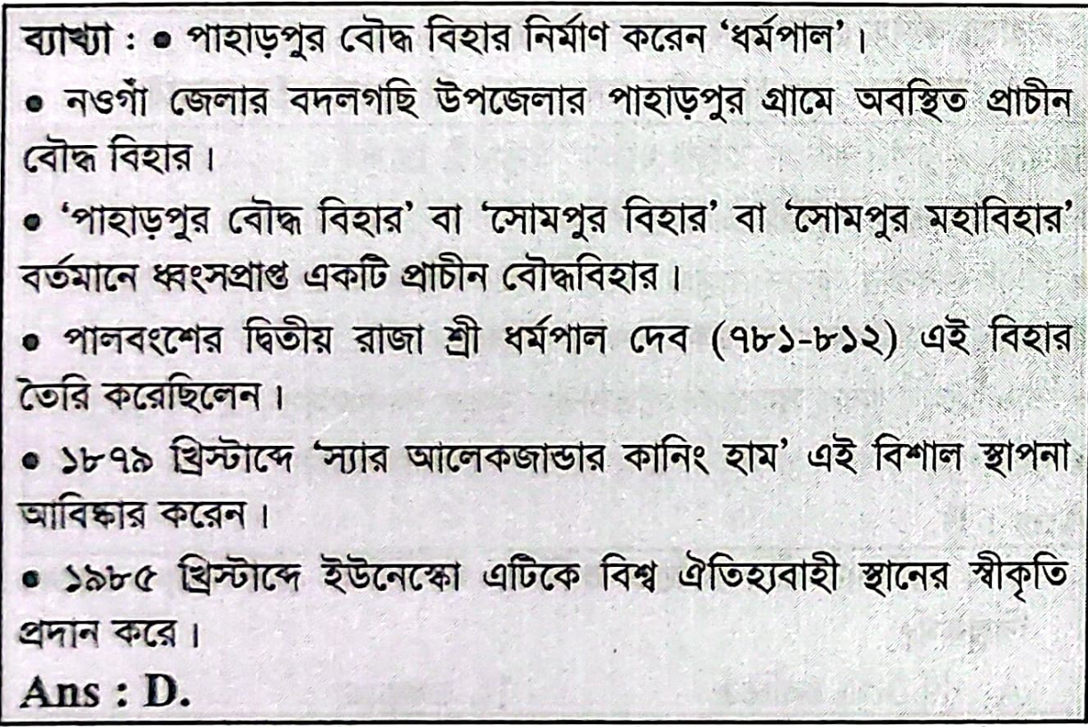 পাহাড়পুর বৌদ্ধ বিহার নির্মাণ করেন কে?