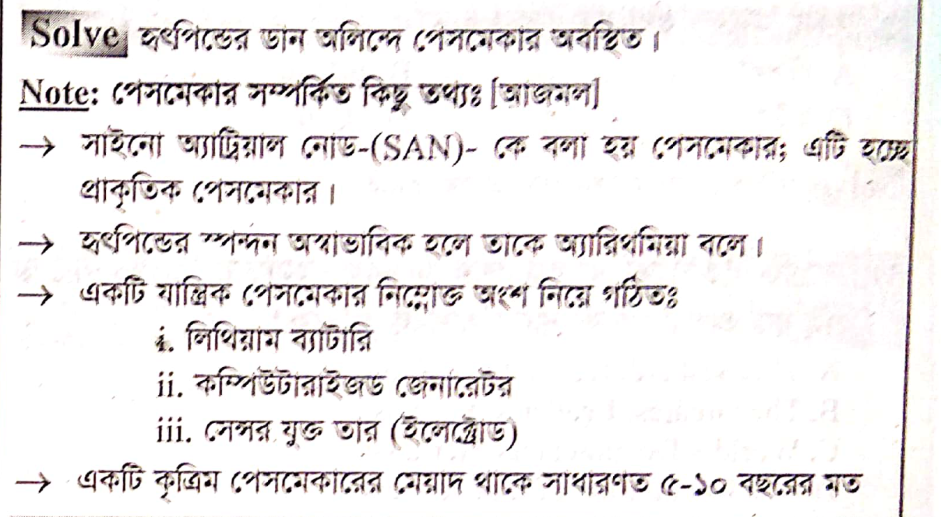 পেসমেকারের অবস্থান হ্রৎপিন্ডের কোথায়?
