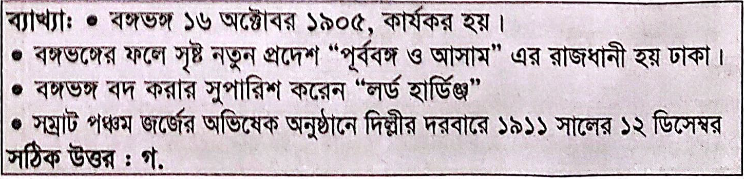 প্রথম কত সালে বঙ্গভঙ্গ হয়?