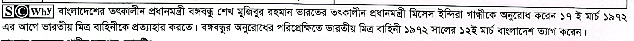 বঙ্গবন্ধুর অনুরোধে ভারতীয় মিত্রবাহিনী কবে বাংলাদেশ ত্যাগ করে?