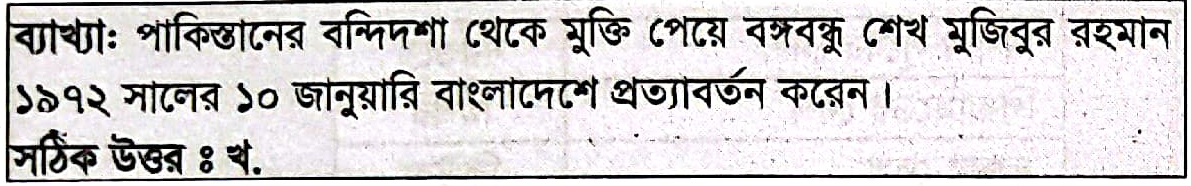 বঙ্গবন্ধু স্বদেশ প্রত্যাবর্তন করেন কোন সালে?