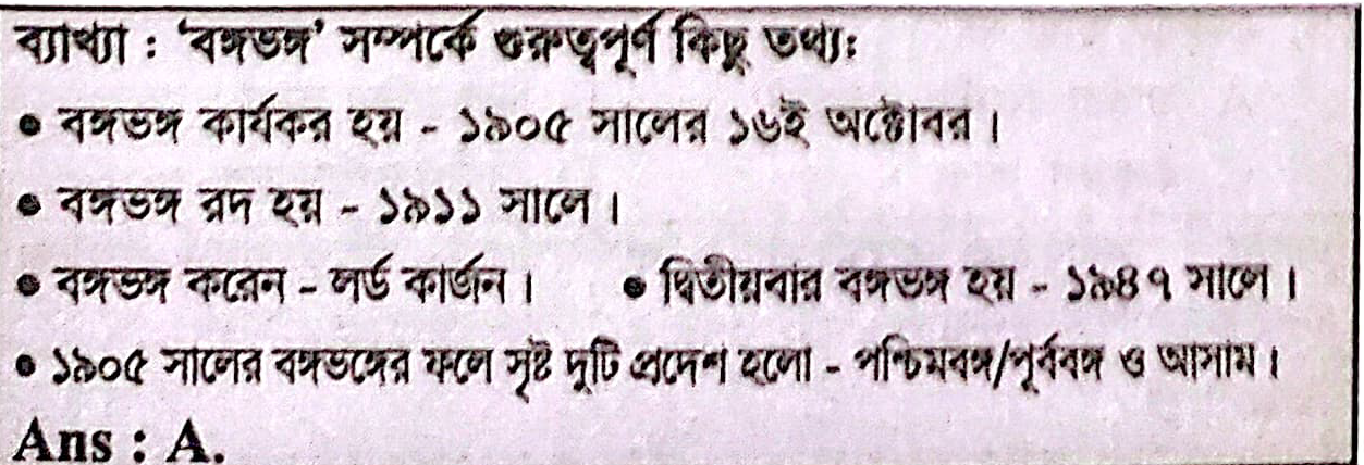 বঙ্গভঙ্গ কর্যকর হয় কোন সালে?