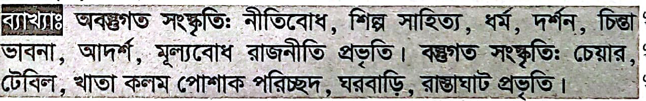 বস্তুগত ও অবস্তুগত সংস্কৃতির উদাহরণকে নির্দেশ করে