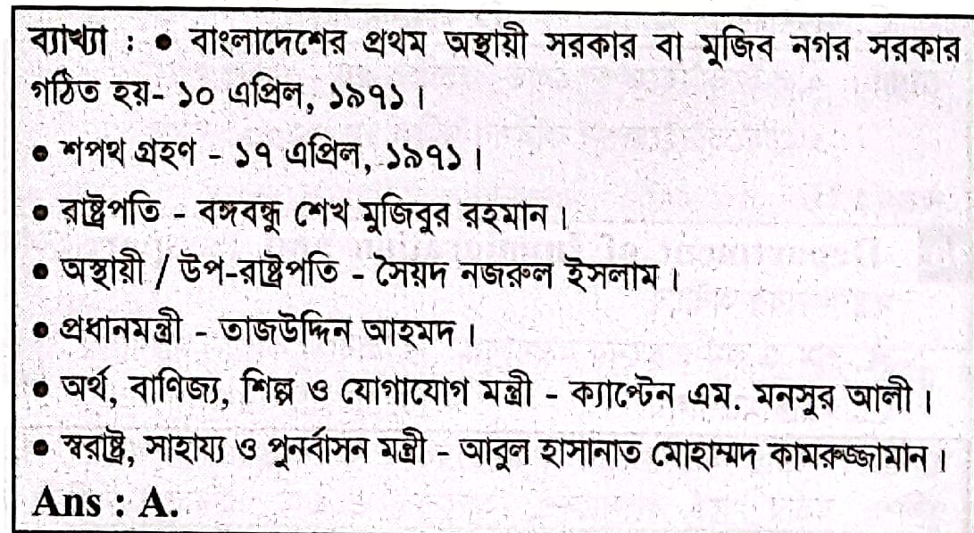 বাংলাদেশের অস্থায়ী সরকারের প্রধানমন্ত্রী কে ছিলেন ?