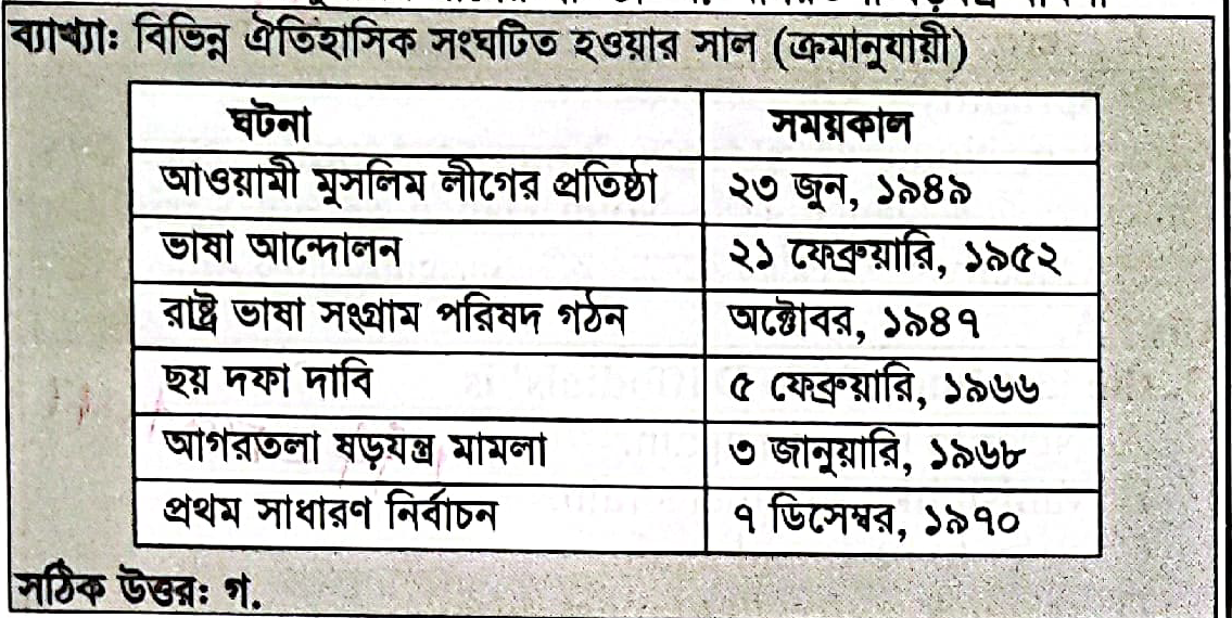 বাংলাদেশের ইতিহাসে যে ঘটনাটি আগে ঘটেছিল –