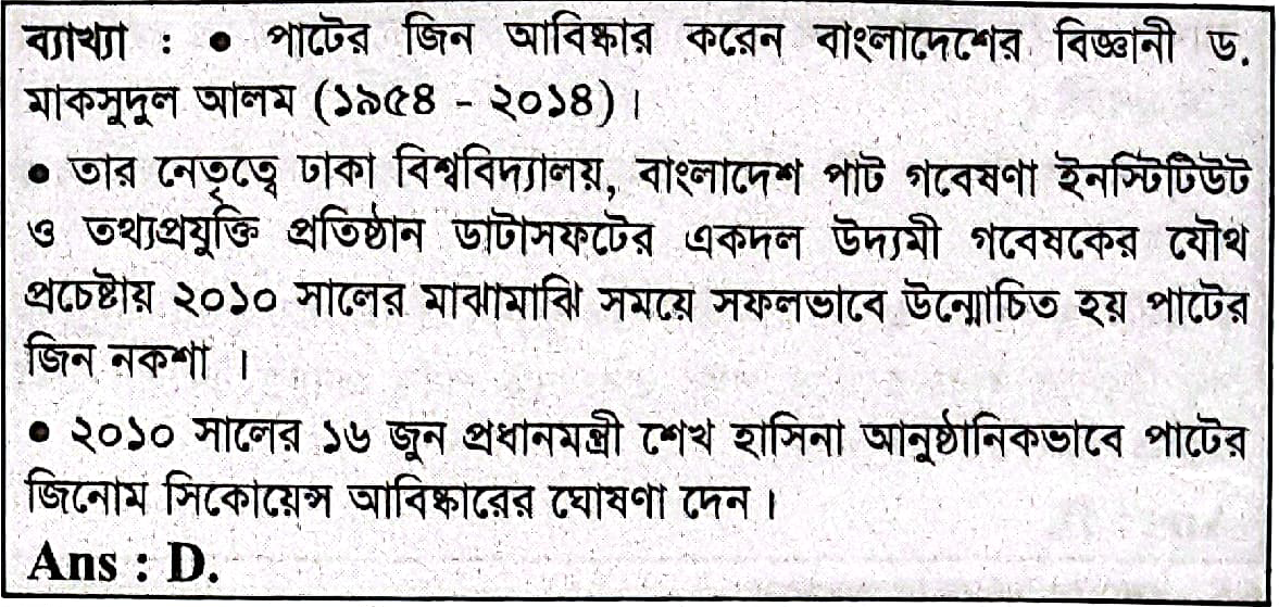 বাংলাদেশের কোন বিজ্ঞানী পাটের জিন বিন্যাস আবিষ্কার করেন?