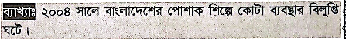 বাংলাদেশের পোশাক শিল্পে কোটা ব্যবস্থার বিলুপ্তি ঘটে কবে?