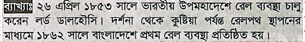 বাংলাদেশের প্রথম রেল লাইন