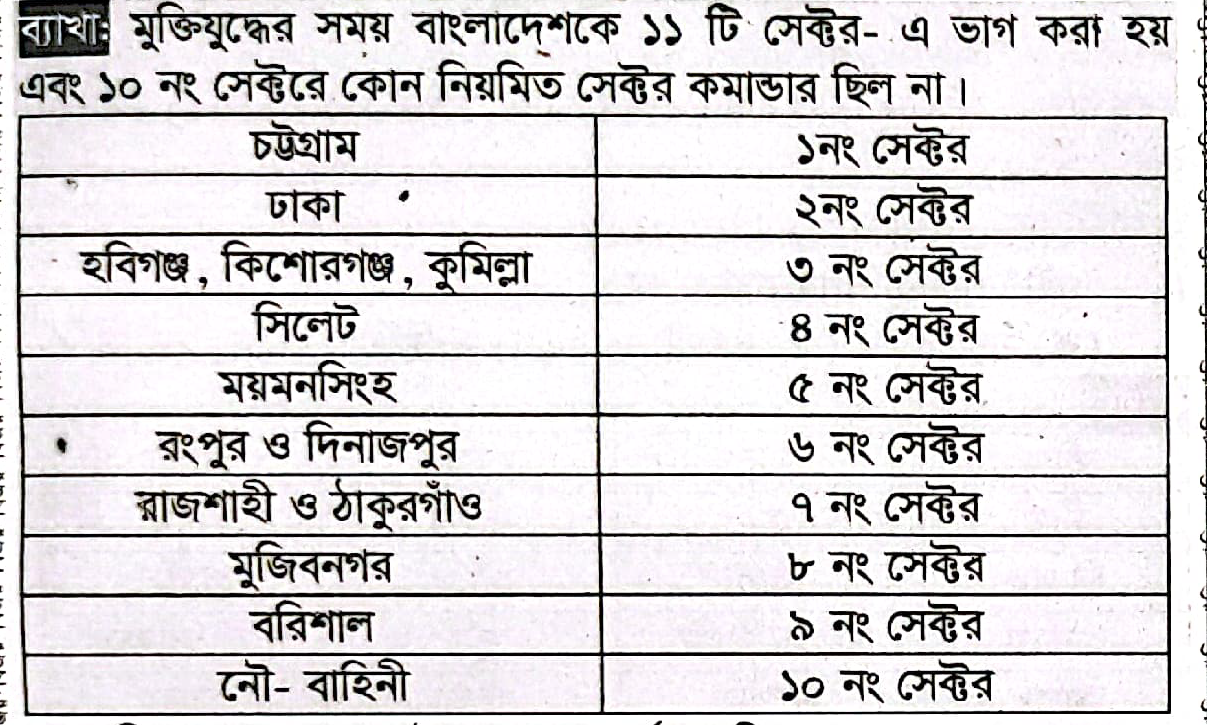 বাংলাদেশের মুক্তিযুদ্ধ কয়টি সেক্টর ছিল?
