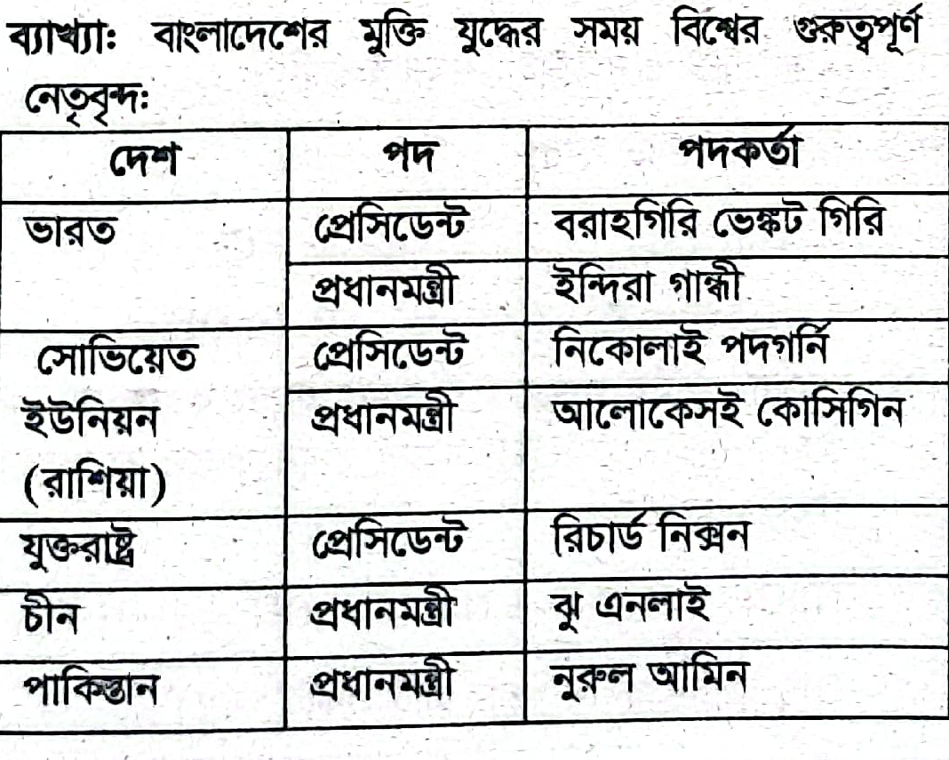 বাংলাদেশের মুক্তিযুদ্ধকালীন ভারতের প্রধানমন্ত্রী কে ছিলেন?