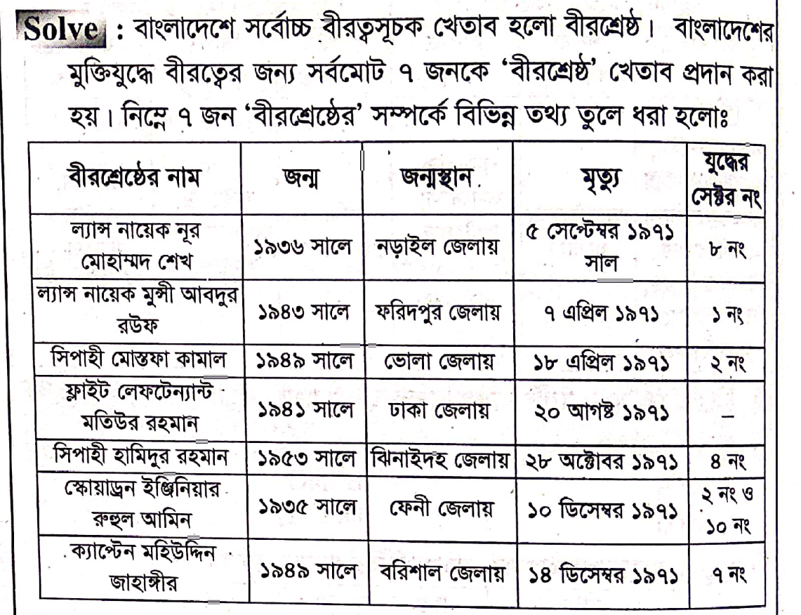 Correct Answer is: বীর শ্রেষ্ঠ
