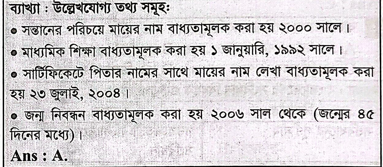 বাংলাদেশে সন্তানের পরিচয়ে মায়ের নাম ব্যবহার বাধ্যতামূলক করা হয় কত সালে?