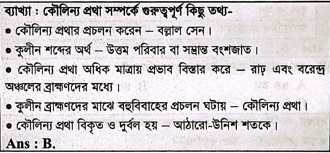 বাংলায় কৌলিন্য প্রথা কে প্রবর্তন করেন?