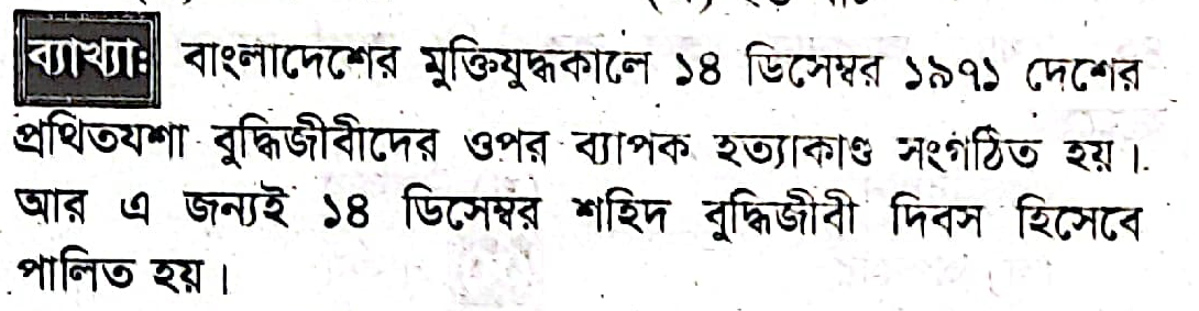 বাংলা দেশে ` শহীদ বুদ্ধিজীবী দিবস ` পালিত হয় কোন তারিখে ?