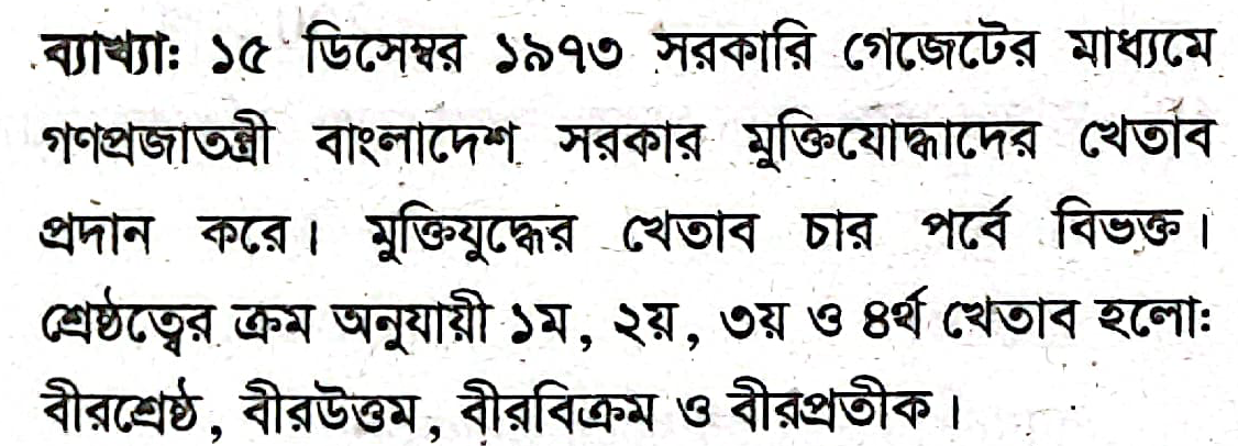 বাংলা দেসের মুক্তি যুদ্ধে অবদানের জন্য সর্বোচ্চ খেতাব কোনটি ?