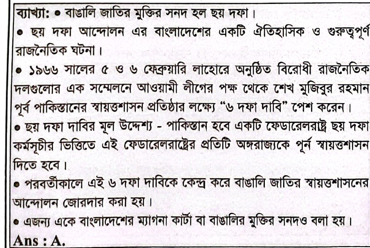 বাঙালি জাতির মুক্তি সনদ হলো (the charter of Freedom for the Bengali nation is)-