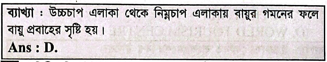 বায়ুপ্রবাহ সৃষ্টি হয় কিসের প্রভাবে ?