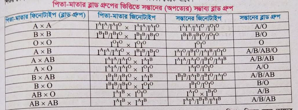 (বোর্ড ক)প্রশ্ন-১৬বাবা ও মা উভয়ের রক্তগ্রুপ AB হলে সন্তানের রক্তগ্রুপ AB হওয়ার সম্ভাবনা কতটুকু?
