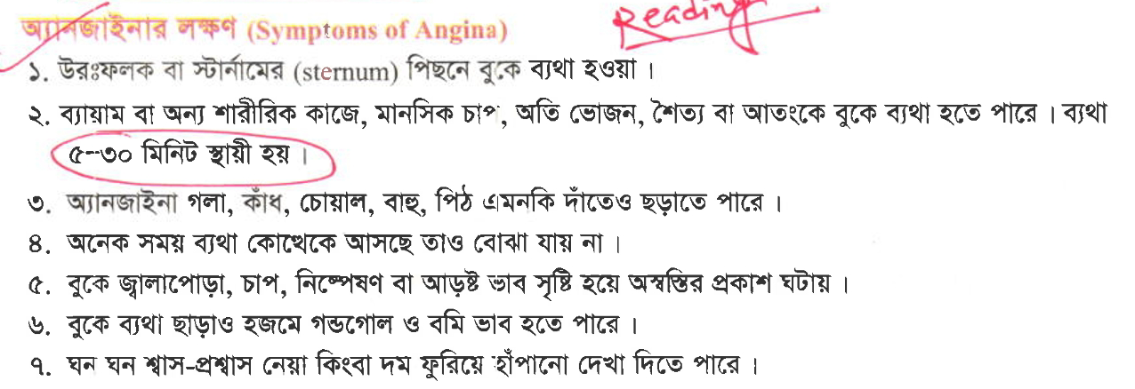 (বোর্ড ক)প্রশ্ন-৯বুকের ব্যথা-ঘাড়, চোয়াল ও বাম বাহুতে ছড়িয়ে পড়ে কখন?