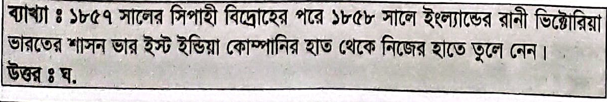Correct Answer is: ১৮৫৮