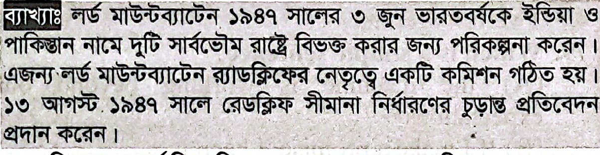 Correct Answer is: লর্ড মাউন্টব্যাটেন